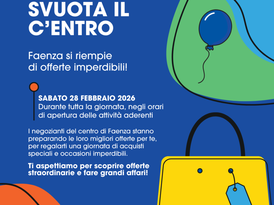 📍 Centro storico di Faenza — 📅 Sabato 28 febbraio 2026 Cos’è “Svuota il C’entro”? Sabato 28 febbraio 2026 i negozi del centro storico di Faenza […]- Date